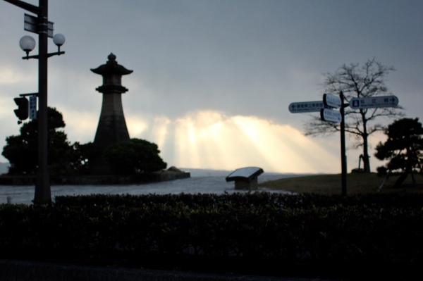 先日、休みの日に宍道湖沿いを運転していたら天使の梯子が見えました。
